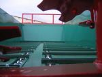- Цяла носеща рама/трегер, неподатливи на осукване, преминаваща по цялата дължина на ремаркето - Голяма товароносимост поради наличието на заварени напречни трегерни греди. - Конструкция с две паралелни цели трегерни рами: рама за ходовата част и рама за изнасящото дъно. - Странично затворена направляваща на верига - Импрегнирано дъно с дебелина 34мм (от тип Т3150-50 мм) - Подът (дъното) е свързан с рамата в една равнина (не остават отлагания) - Подът е обшит с защитна ламарина - Профилирани стоманени бордови страници с уплътнени въздушни камери (против замръзване) - Обръщащи се и разделени странични стени (до тип Т3080) - Серийна защитна решетка против плискане - Всички оси и спирачки са проверени от TÜV - Серийна блокираща спирачка - Спирачните системи са съобразени със законните изисквания на ГФР - Ковани теглични халки - Вдигащо се опорно колело (до тип Т3120) - Хидравлична опора (крак) (от тип Т3150) - Двигателни валове от стомана ST60 - Шарнирен вал с куплунг против претоварване (ножичен) - Хидравлично задвижване на транспортните вериги - Разпръскващо устройство с директно задвижване през куплунг с фрайлауф (свободен ход) - Транспортните вериги на дъното, изработени от високоякостна, подобрена, легирана с манган стомана G80 - Загребващи лайсти на веригите от стомана ST70 - Поцинковани транспортни вериги по пода - Двигателни колела на веригите от сферочугун - Вал на задвижването на веригите, изработен от стомана ST60 (до тип Т3080) - Вал на задвижването на веригите, изработен от легирана стомана 42CrMo4- хром молибден- (от профи-тип Т3090) - Всеки верижен щранг може да се обтяга отпред - Направляващите шини на веригите са поцинковани - От профи-тип Т3090 валът на задвижването и обръща- щите движението колелета са на плъзгащи се лагери - Разпръскващи валци са от дебелостенни безшевни стоманени тръби - Фрезови пластини са от високоякостна стомана със закалени ръбове - Фрезови пластини завинтени, използваеми двустранно - Поотделно балансирани разпръскващи валци с оптимално спокоен ход на въртене - Затворена горна част на рамата, не позволява отлагане на тор - Вертикални валци в легло в края на тръбата (за фин торов материал) и маслена предавателна кутия - Всеки вертикален валяк със самостоятелна маслена предавателна кутия - Задвижване от хоризонталните валци посредством разделено верижно задвижване. (Самостоятелно независимо верижно задвижване) |