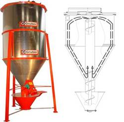| Вертикален фуражосмесител „Грубер” Тип FM 500 / 750 / 100 / 1200 /1600 2000 / 2400 • Метод на принудително смесване, поради което е възможно смесването на всякакви компоненти; • Особено лесен за монтаж поради модулност на конструкцията; Разглобяем. • Всички конструктивни части могат да бъдат пренесени в разглобен вид във всяко помещение; • Кратко време на смесване, благодарение на големите размери на шнека - 3 до 15 мин; Пригодим към всеки тип мелачка на фуражно зърно |